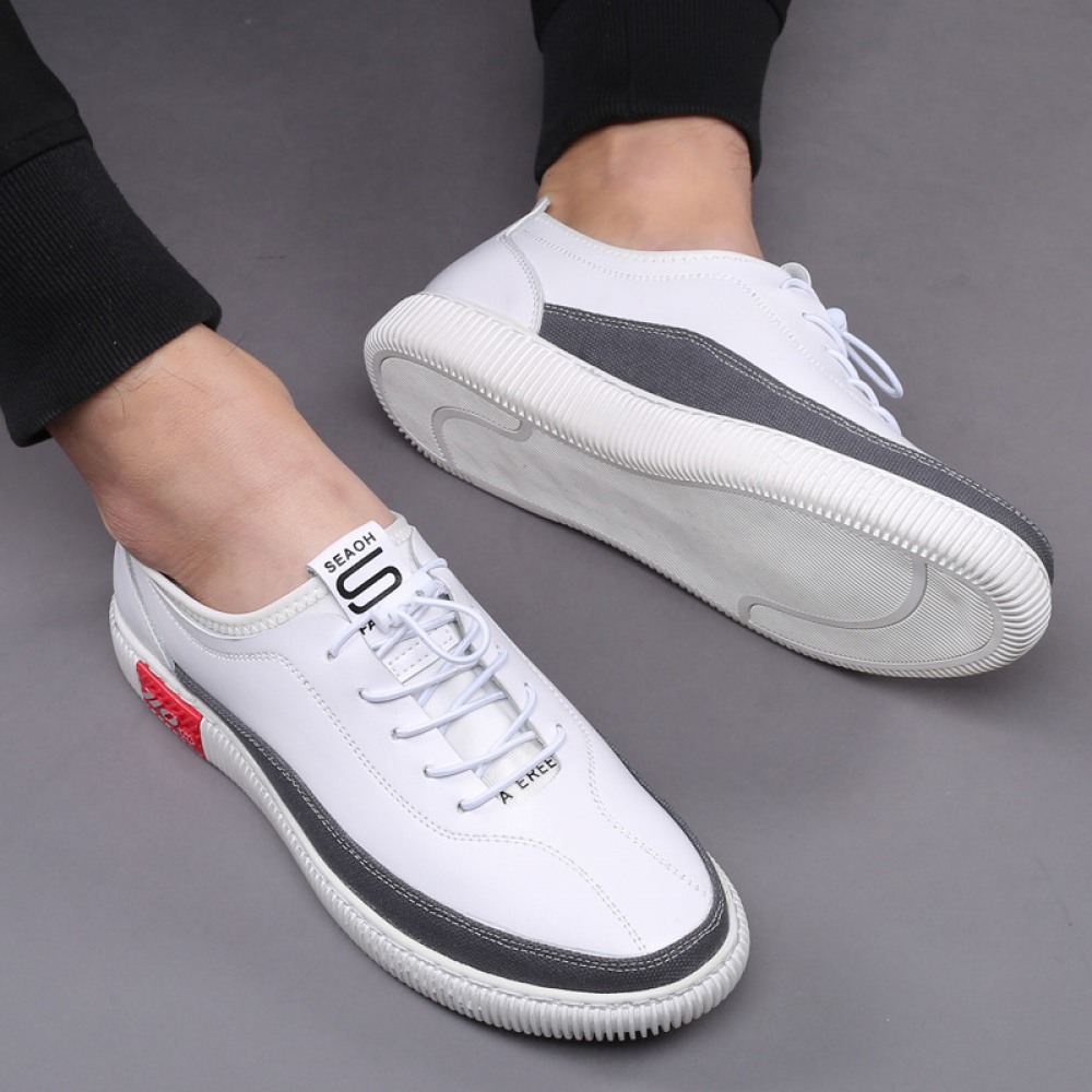 Autumn New Leather White Shoes Breathable One-Foot Casual Shoes Lazy Shoes Trendy Men's Shoes
