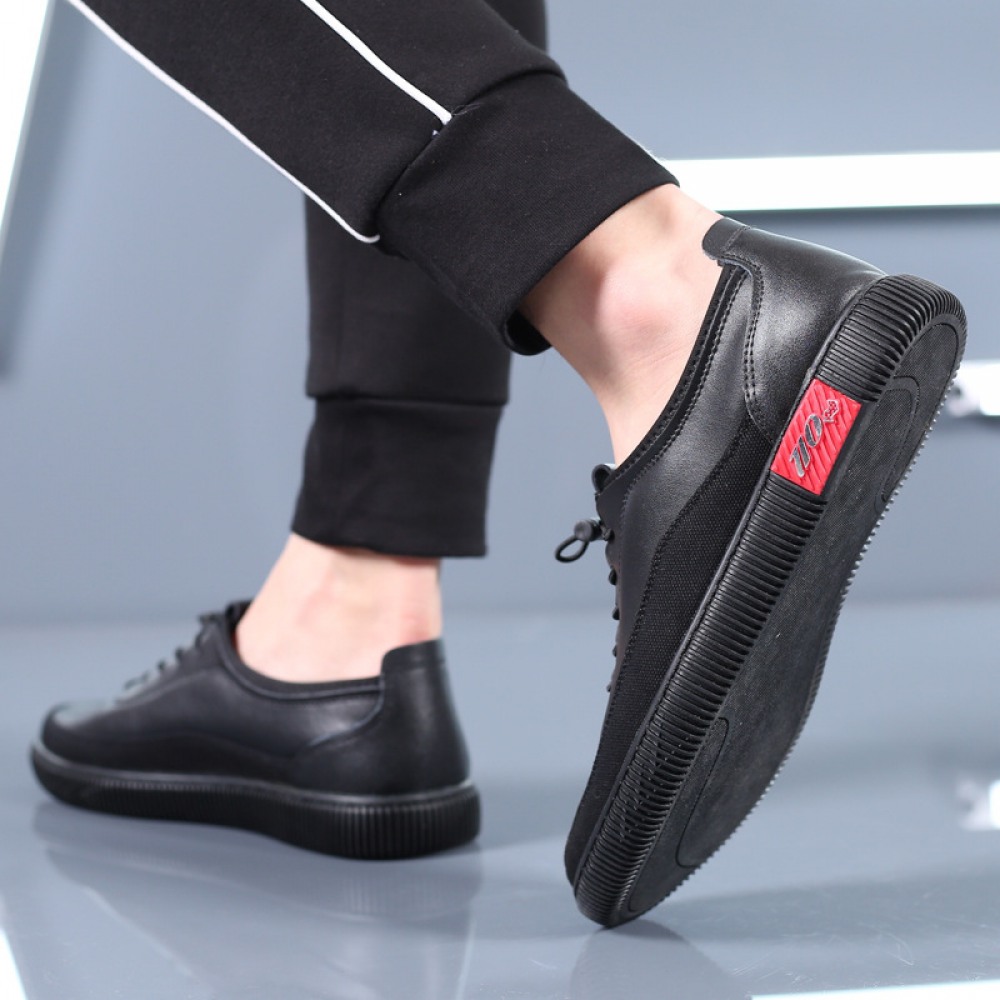 Black Men's Small Leather Shoes Mens Trend Casual Leather Breathable Shoes
