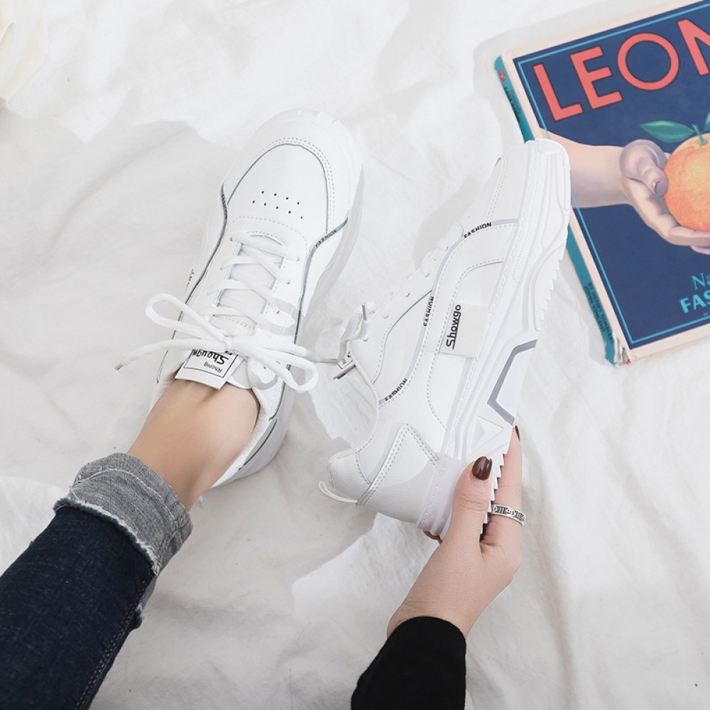Spring New White Shoes Female Student Running Board Shoes Women Heightened Casual Shoes Breathable