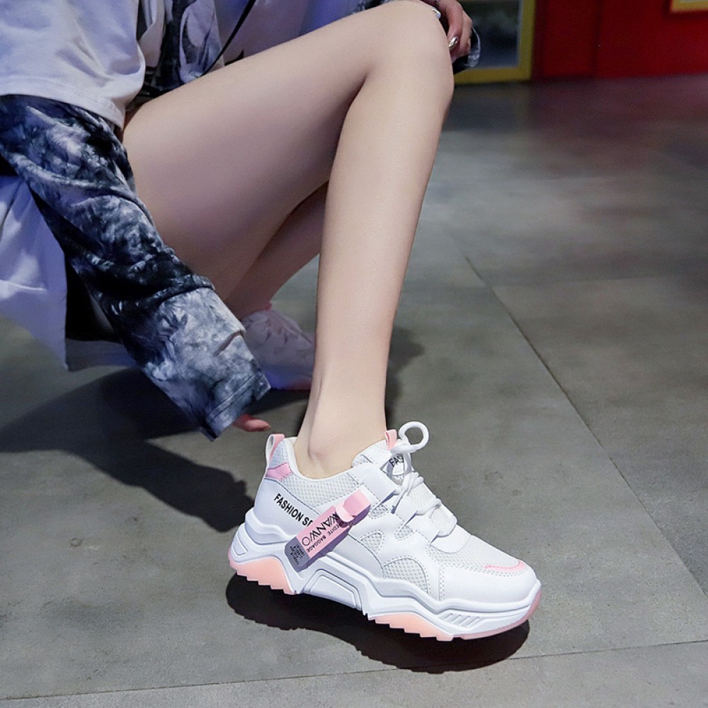 Women's Autumn New Casual Sports Shoes Mesh Breathable Thick Sole Height-Increasing Shoes Summer Trendy Sneakers